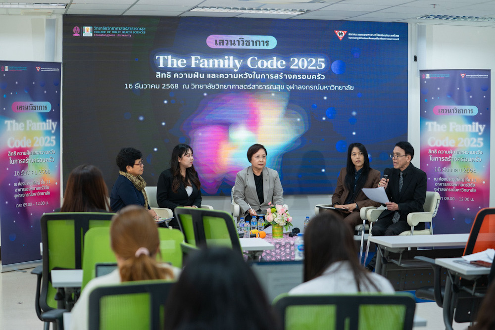 กรุงเทพ – วันที่ 16 ธันวาคม 2568 สมาคมวางแผนครอบครัวแห่งประเทศไทย ในพระราชูปถัมภ์สมเด็จพระศรีนครินทราบรมราชชนนี ซึ่งมีบทบาทในการส่งเสริมสิทธิสุขภาพทางเพศและอนามัยการเจริญพันธุ์ (SRHR) และการวางแผนครอบครัว ร่วมกับ วิทยาลัยวิทยาศาสตร์สาธารณสุข จุฬาลงกรณ์มหาวิทยาลัย จัดเสวนาวิชาการ ในหัวข้อ “The Family Code 2025: สิทธิ ความฝัน และความหวังในการสร้างครอบครัว” เพื่อเป็นเวทีรับฟังมุมมองจากประชากรทุกกลุ่ม ที่มีความปรารถนาในการสร้างครอบครัว ให้สอดคล้องกับหลักการสิทธิมนุษยชน ความเท่าเทียมทางเพศ และลดการตีตราทางสังคมต่อทุกรูปแบบของ “ครอบครัว”