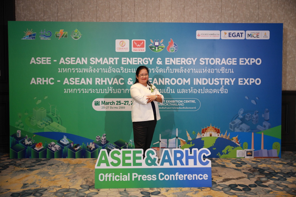 นางสาวเสวิตา ถิ่นสันติสุข ผู้อำนวยการฝ่ายประชาสัมพันธ์ สมาคมพลังงานหมุนเวียนไทย (RE100) กล่าวว่า สมาคมพลังงานหมุนเวียนไทย (อาร์อี 100) มีพันธกิจในการส่งเสริมและสนับสนุนการใช้พลังงานสะอาดในทุกภาคส่วน ทั้งภาคอุตสาหกรรม ธุรกิจ อาคาร และหน่วยงานต่างๆ รวมถึงผลักดันให้ประเทศไทยเดินหน้าตามเป้าหมายด้าน BCG Economy, Net Zero, และการเพิ่มสัดส่วนการใช้พลังงานหมุนเวียนตามมาตรฐานสากล เช่น กรอบ RE100 ที่องค์กรชั้นนำทั่วโลกให้ความสำคัญ การจัดงาน ASEE และ ARHC ในปี 2026 นับเป็นโอกาสที่ยิ่งใหญ่ในการรวบรวมนวัตกรรมล่าสุดจากผู้ผลิตชั้นนำ ทั้งด้านโซลาร์เซลล์ แบตเตอรี่ พลังงานลม ระบบกักเก็บพลังงาน เทคโนโลยีทำความเย็นประสิทธิภาพสูง ตลอดจนโซลูชันอาคารประหยัดพลังงาน ดังนั้น งาน ASEE และ ARHC 2026 จึงเป็นเวทีที่สามารถสร้างความร่วมมือใหม่ ๆ กระตุ้นการลงทุน และเปิดโอกาสให้ผู้ประกอบการไทยได้เข้าถึงเทคโนโลยีระดับโลกที่จะช่วยลดต้นทุน เพิ่มประสิทธิภาพ และสนับสนุนการเปลี่ยนผ่านพลังงานอย่างยั่งยืน นอกจากจะเป็นการสนับสนุน Ecosystem อุตสาหกรรมพลังงานหมุนเ