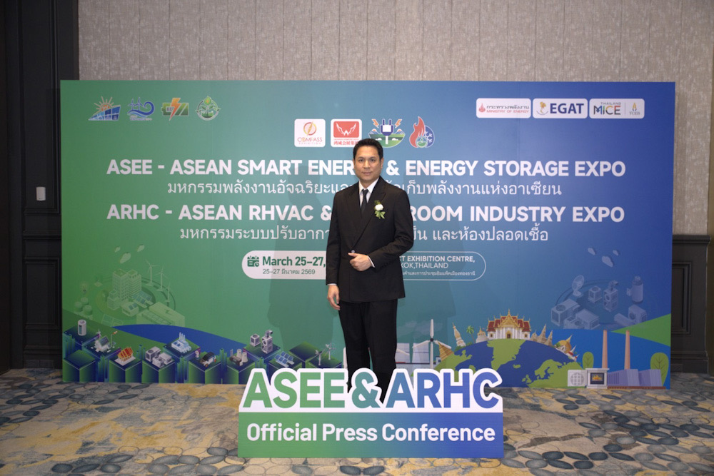 นายสุรนาท พิพัทธกุศลกุล ผู้จัดการอาวุโส ฝ่ายอุตสาหกรรมการแสดงสินค้านานาชาติ สํานักงานส่งเสริมการจัดประชุมและนิทรรศการ (องค์การมหาชน) (TCEB) กล่าวว่า ในฐานะองค์กรหลักของประเทศด้านการส่งเสริมอุตสาหกรรมไมซ์ TCEB ให้ความสำคัญอย่างยิ่งกับงานแสดงสินค้าที่สนับสนุนยุทธศาสตร์ BCG Economy, นโยบาย Net Zero, และการพัฒนา Future Industries ของประเทศ ซึ่งงาน ASEE และ ARHC 2026 ถือเป็นงานที่สอดคล้องกับยุทธศาสตร์เหล่านี้อย่างโดดเด่น และช่วยเสริมบทบาทของประเทศไทยในการเป็นศูนย์กลางด้านเทคโนโลยีสีเขียวและนวัตกรรมพลังงานของภูมิภาคอาเซียน การจัดงานทั้งสองงานไม่เพียงเป็นเวทีแสดงผลงานด้านนวัตกรรมเทคโนโลยีเท่านั้น แต่ยังสะท้อนถึงความมุ่งมั่นของประเทศไทยในการขับเคลื่อนอุตสาหกรรม พลังงานอัจฉริยะ (Smart Energy) ระบบกักเก็บพลังงาน รวมถึงอุตสาหกรรม เครื่องปรับอากาศ ตู้แช่เย็น และเทคโนโลยีควบคุมอากาศภายในอาคาร ให้เติบโตไปสู่ทิศทางที่ยั่งยืนและเป็นมิตรต่อสิ่งแวดล้อมมากยิ่งขึ้น TCEB พร้อมให้การสนับสนุนการจัดงานครั้งนี้อย่างเต็มที่ ทั้งในด้านการส่งเสริมผู้แสดงสินค้าและผู้ซื้อจากต่างประเทศ การพัฒนาความร่วมมือกับพันธมิตร และการยกระดับคุณภาพงานแสดงสินค้าให้เป็นแพลตฟอร์มที่สร้างผลลัพธ์ทางเศรษฐกิจและความร่วมมืออย่างเป็นรูปธรรม