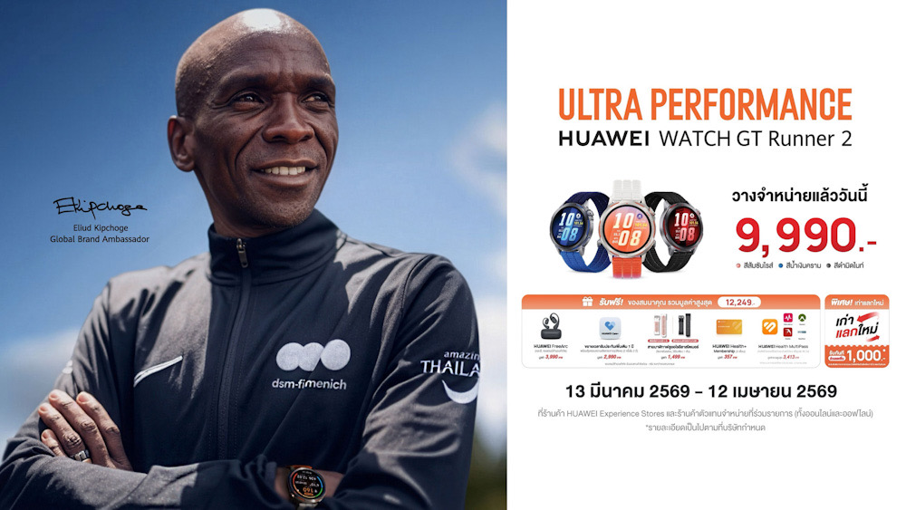 กรุงเทพฯ 26 มีนาคม 2569 – สำหรับนักวิ่ง ไม่ว่าคุณจะเป็นมือใหม่ที่เพิ่งเริ่มต้นก้าวแรก หรือนักวิ่งมากประสบการณ์ที่ตั้งเป้าหมายสู่เส้นชัยมาราธอน การฝึกซ้อมที่ชาญฉลาดและการเข้าใจร่างกายตัวเองคือหัวใจสำคัญสู่ความสำเร็จ หัวเว่ยเข้าใจสิ่งนี้ดี จึงได้พัฒนานาฬิกาอัจฉริยะ HUAWEI WATCH GT Runner 2 ที่ออกแบบมาเพื่อเป็นโค้ชส่วนตัวระดับโปรบนข้อมือ เพื่อยกระดับการฝึกซ้อมให้นักวิ่งที่ต้องการก้าวไปสู่ระดับโปร ด้วยนวัตกรรมที่คิดค้นมาเพื่อนักวิ่งโดยเฉพาะ โดยขอแนะนำเคล็ดลับ 5 ข้อดังต่อไปนี้