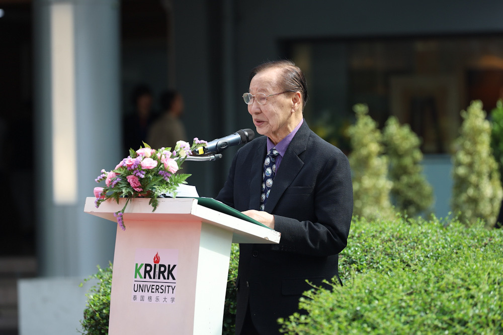 ศาสตราจารย์ ดร. นายแพทย์ กระแส ชนะวงศ์ อธิการบดีมหาวิทยาลัยเกริกกล่าวว่า “วันนี้เราต่างได้มาร่วมน้อมนำจิตตั้งมั่นเพื่อแสดงออกถึงความเคารพ และน้อมรำลึกถึงคุณงามความดีอันสูงส่งที่มีอย่างคุณูปการ ของท่าน ดร.เกริก มังคละพฤกษ์ ตลอดระยะเวลาที่ผ่านมา 73 ปี มหาวิทยาลัยเกริกได้ผ่านช่วงเวลาที่มีคุณค่า และทำหน้าที่รับใช้สังคมมาอย่างยาวนานด้วยรากฐานที่ท่าน ดร.เกริก มังคละพฤกษ์ ได้เป็นผู้ก่ออิฐก้อนแรกของการศึกษาให้แก่เยาวชนในวันนั้นจนถึงวันนี้ต่างเติบโตออกไปปฏิบัติหน้าที่ดูแลครอบครัว สังคม และประเทศชาติอย่างมีคุณค่า คุณธรรม และสร้างชื่อเสียงให้แก่มหาวิทยาลัยเกริกดังเป็นที่ปรากฎในสังคม