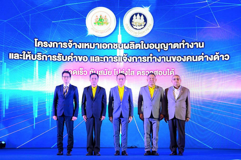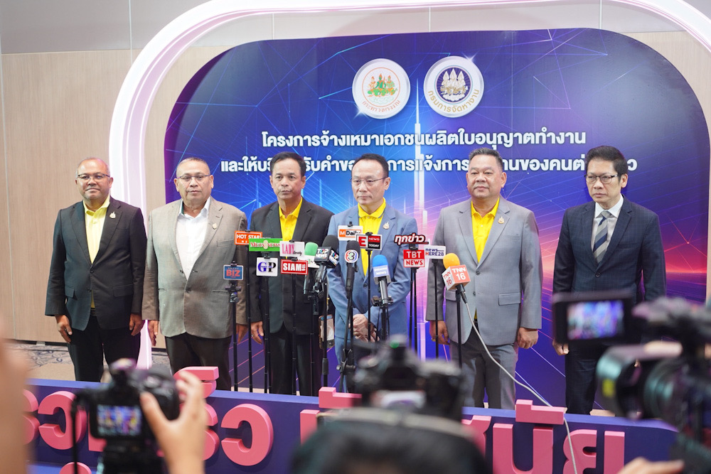วันที่ 30 กรกฎาคม 2568 นายสมชาย มรกตศรีวรรณ อธิบดีกรมการจัดหางาน เป็นประธานในพิธีแถลงข่าว เพื่อประชาสัมพันธ์โครงการจ้างเหมาเอกชนผลิตใบอนุญาตทำงานและให้บริการรับคำขอและการแจ้งการทำงานของคนต่างด้าว (Outsourcing Service) อย่างเป็นทางการ โดยมีนายจำนงค์ ทรงเคารพ ผู้ตรวจราชการกรม กรมการจัดหางาน กล่าวรายงาน ผู้บริหารกระทรวงแรงงาน ผู้แทนจากภาคเอกชน ร่วมเป็นเกียรติ ณ โรงแรมอัศวิน แกรนด์ คอนเวนชั่น กรุงเทพมหานคร ห้องอัศวิน แกรนด์ บอลรูม B – C ชั้น 4 เพื่อมุ่งยกระดับการให้บริการด้านแรงงานต่างด้าวให้ทันสมัย สะดวก รวดเร็ว และโปร่งใสมากยิ่งขึ้น