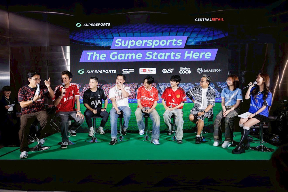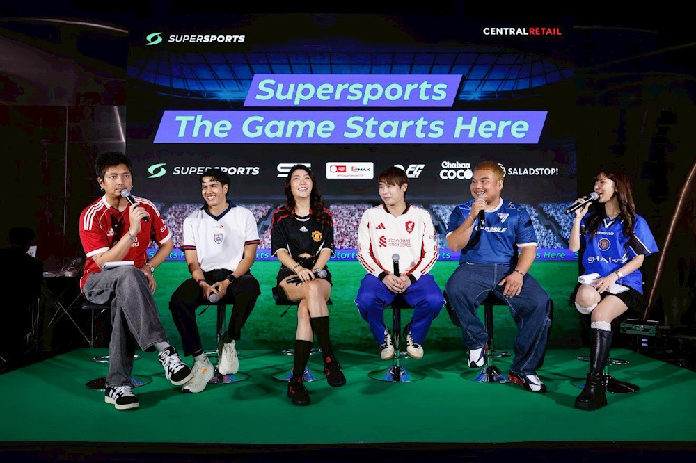 10 สิงหาคม 2568 | กรุงเทพฯ – Supersports (ซูเปอร์สปอร์ต) ในเครือเซ็นทรัลรีเทล แหล่งรวมสินค้าและแบรนด์กีฬาอันดับ 1 ของไทย จัดกิจกรรมเอาใจคอลูกหนังต้อนรับฤดูกาลใหม่ของฟุตบอลในทุกลีก “Supersports The Game Starts Here” ด้วยไฮไลต์อลังการกับการเปิดตัว Jersey Wall ที่ครบครันที่สุด พร้อมกิจกรรมพิเศษมากมายที่จัดเอาใจแฟนบอล โดยมี คุณวิยะดา บูรณะภากรณ์ ผู้ช่วยกรรมการผู้จัดการใหญ่อาวุโส ฝ่ายการตลาด บริษัท ซี อาร์ ซี สปอร์ต จำกัด ร่วมด้วยพันธมิตร คุณวราลักษณ์ ศรัณยคุปต์ ผู้จัดการอาวุโสบริษัท โมโน สตรีมมิ่ง จำกัด หรือ Monomax / คุณพิมสิริ ทองร่มโพธิ์ Marketing Director บริษัท เอส เอฟ คอร์ปอเรชั่น จำกัด (มหาชน) / คุณชัชวาล การุณยะวนิช SEA Marketing Lead EA Sports / คุณกันต์ กุลปิยะวาจา Commercial Director บริษัท ชบาบางกอก จำกัด และ คุณอริธัชย์ ชือ-อชิตะ Brand Manager บริษัท ฟู้ดเอ๊กซ์ไซต์ จำกัด ในนามของแบรนด์ Saladstop! ผู้ให้การสนับสนุนและให้เกียรติร่วมงาน ในครั้งนี้