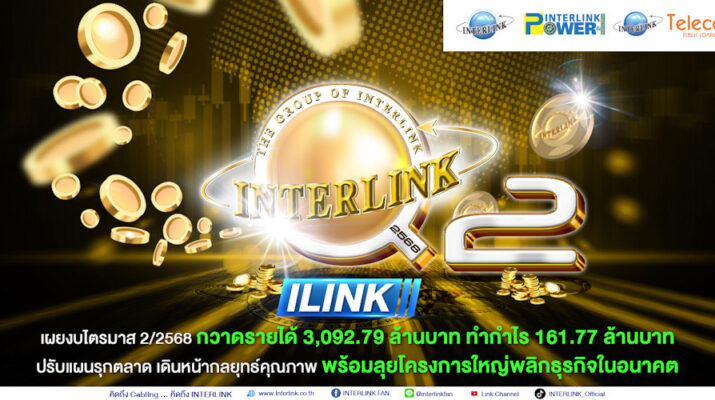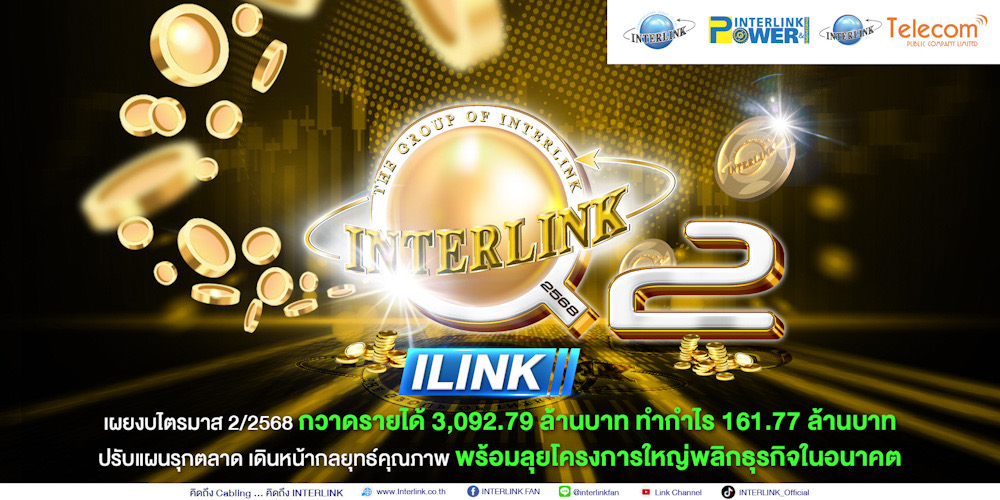 บริษัท อินเตอร์ลิ้งค์ คอมมิวนิเคชั่น จำกัด (มหาชน) หรือ ILINK รายงานผลการดำเนินงานครึ่งปีแรก (มกราคม – มิถุนายน 2568) ทำรายได้รวม 3,092.79 ล้านบาท และกำไรสุทธิ 161.77 ล้านบาท แม้เศรษฐกิจโดยรวมยังคงมีความท้าทาย แต่บริษัทยังคงรักษาความแข็งแกร่งในทั้ง 3 กลุ่มธุรกิจหลัก พร้อมปรับกลยุทธ์เน้นการเติบโตอย่างมีคุณภาพ (Quality Growth) และสร้างโอกาสจากโครงการขนาดใหญ่ที่จะเกิดขึ้นในอนาคต