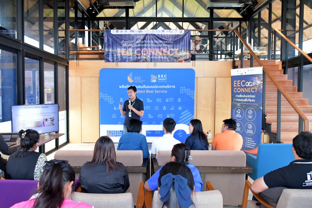กิจกรรมฯ ในครั้งนี้ เป็นการขับเคลื่อนกิจกรรมภายใต้ข้อตกลงความร่วมมือ MOU เรื่อง “การเชื่อมโยงประโยชน์การลงทุนสู่พื้นที่ชุมชนโดยรอบนิคมอุตสาหกรรมในเขตพื้นที่จังหวัดฉะเชิงเทรา” เพื่อส่งเสริมให้เกิดการขับเคลื่อนเชื่อมโยงประโยชน์จากการลงทุนสู่พื้นที่ชุมชนในเขตพื้นที่ EEC โดยมีกิจกรรมการให้ความรู้ “การเตรียมความพร้อมเข้าสู่ตลาดค้าปลีกสมัยใหม่สำหรับผู้ประกอบการรายย่อย” โดย นายกิตติ เฟื่องวุฒิราญ ผู้จัดการทีมเพื่อการพัฒนาอย่างยั่งยืน สำนักประธานเจ้าหน้าที่บริหารจาก CJ MORE มาถ่ายทอดความรู้ด้านมาตรฐานสินค้า การออกแบบบรรจุภัณฑ์ และแนวทางการเข้าสู่ตลาดค้าปลีกสมัยใหม่ (Modern Trade) เพื่อเสริมสร้างศักยภาพวิสาหกิจชุมชน และผู้ประกอบการสู่ระบบค้าปลีก และขยายช่องทางการจัดจำหน่ายอย่างยั่งยืน ภายในกิจกรรมมีการแลกเปลี่ยนความคิดเห็นเพื่อนำไปสู่การพัฒนาและปรับปรุงผลิตภัณฑ์ให้มีความพร้อมเข้าสู่ตลาด ซึ่งวิสาหกิจชุมชนและผู้ประกอบการที่เข้าร่วมกิจกรรมในครั้งนี้ ได้แก่ กลุ่มวิสาหกิจที่ได้รับตรารับรอง “EEC Select Best Service” ประเภทบริการและผลิตภัณฑ์เพื่อการบริการ