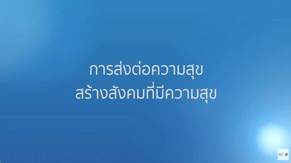 สำหรับภาพยนตร์โฆษณา “สังคมแห่งความสุขที่ยั่งยืน” เป็นการบอกเล่าเรื่องราว สร้างแรงบันดาลใจจาก“การให้” ที่เริ่มต้นขึ้นมาจากจุดเล็ก ๆ ขับเคลื่อนสังคมจากการเป็นผู้รับสู่การเป็นผู้ให้ สู่โอกาสในการสร้างสังคมแห่งความสุขที่เข้มแข็งและยั่งยืน ภายใต้แนวความคิด “การส่งต่อความสุข สร้างสังคมที่มีความสุข” ตอกย้ำตลอดเส้นทางของ GLO ที่ผ่านมา ได้สร้างโอกาสให้คุณมีส่วนร่วมในการเป็นผู้ให้มาต่อเนื่อง