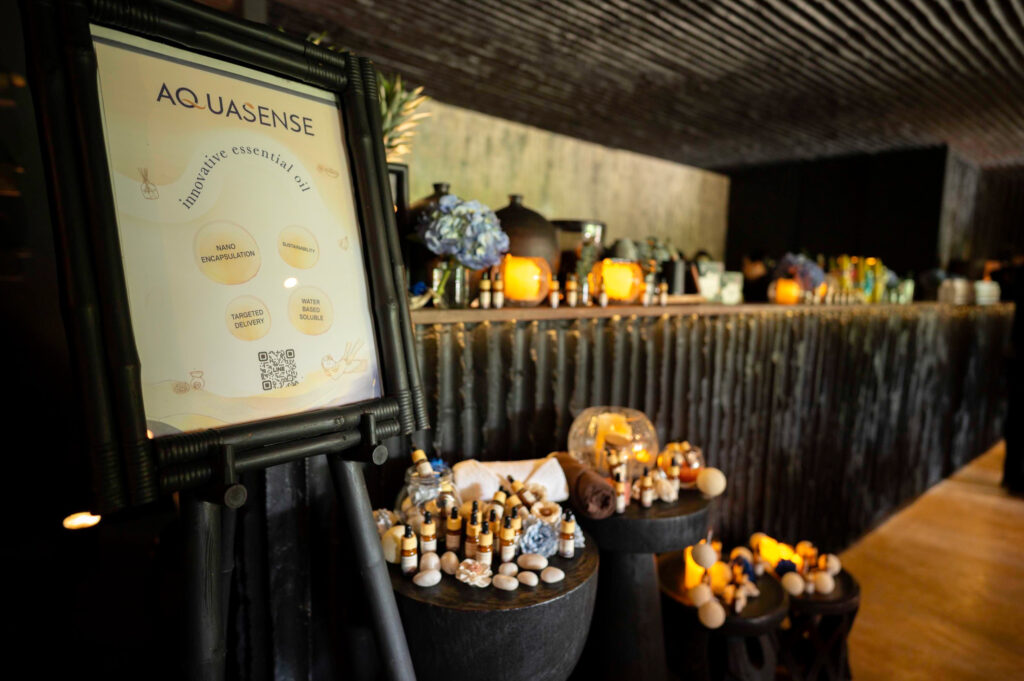ดร. ธีรพงศ์ ยะทา กรรมการผู้จัดการ ผลิตภัณฑ์ AquaSense ภายใต้บริษัท พรีเมียร์ อินโนว่า จำกัด เปิดเผยว่า ปัจจุบันในยุคที่ธุรกิจ Hospitality และ Wellness ให้ความสำคัญกับ “การสร้างประสบการณ์” มากกว่าการให้บริการเพียงอย่างเดียว AquaSense เปิดตัว Essential Oil เนื้อน้ำนม (Nanoencapsulation Essential Oil) ที่ออกแบบมาเพื่อธุรกิจ สปา โรงแรม รีสอร์ต และศูนย์สุขภาพ โดยมีจุดเด่นคือสามารถละลายน้ำได้ทันที ซึมซาบสู่ผิวรวดเร็วโดยไม่เหนียวเหนอะหนะ ปลอดภัยแม้ผิวบอบบางแพ้ง่าย พร้อมกลิ่นหอมเอกลักษณ์จากธรรมชาติ ช่วยสร้าง Signature Scent ที่เป็นเอกลักษณ์ให้กับแต่ละแบรนด์