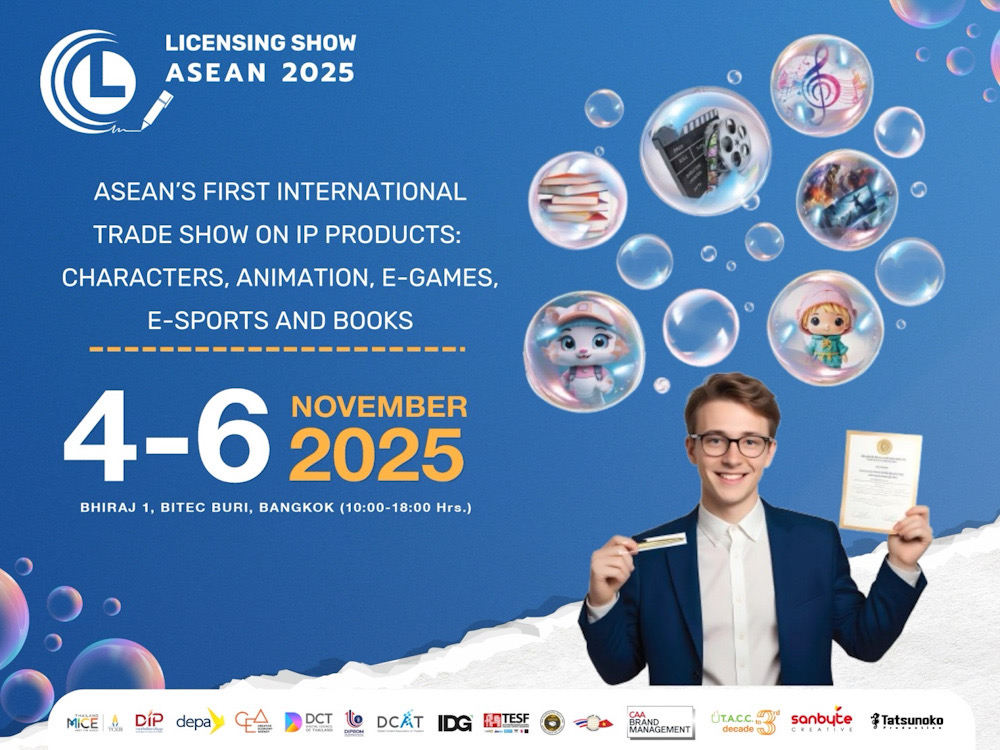 ตอบรับมูลค่าตลาดการอนุญาตให้ใช้สิทธิ์ทั่วโลกเติบโตอย่างต่อเนื่อง บริษัท กวิน อินเตอร์เทรด จำกัด เตรียมจัดงาน Licensing Show ASEAN 2025 แสดงสินค้าและบริการระดับนานาชาติ ที่เชื่อมโยงโอกาสด้านการอนุญาตใช้ลิขสิทธิ์ในหลากหลายกลุ่มอุตสาหกรรม เช่น แคแร็กเตอร์ แอนิเมชั่น อีสปอร์ต อีเกมส์ หนังสือ สินค้าไลฟ์สไตล์ ของสะสม และสื่อบันเทิง โดยรวม 50 บริษัทจาก 5 ประเทศ ไทย ญี่ปุ่น เกาหลี ฮ่องกง สิงคโปร์ จัดแสดงความหลากหลายมากกว่า 150 คาแร็คเตอร์ ภายใต้การสนับสนุนของภาครัฐและเอกชนจัดงานอย่างยิ่งใหญ่ครั้งแรกในประเทศไทยและอาเซียน ระหว่างวันที่ 4-6 พฤศจิกายน 2568 ณ ภิรัชฮอลล์ 1 ศูนย์นิทรรศการและการประชุม ไบเทคบุรี คาดตลอด 3 วันของการจัดงานมีผู้เข้าชมกว่า 2,000 คน สร้างมูลค่าทางธุรกิจราว 100 ล้านบาท