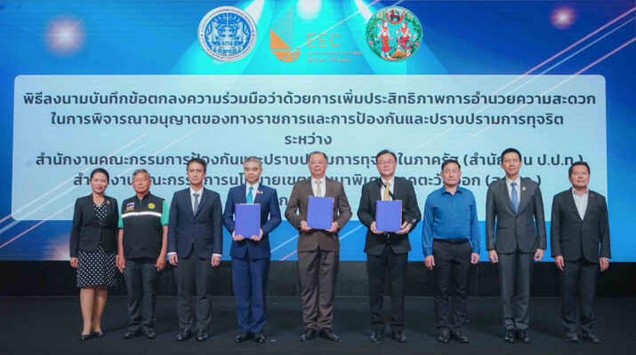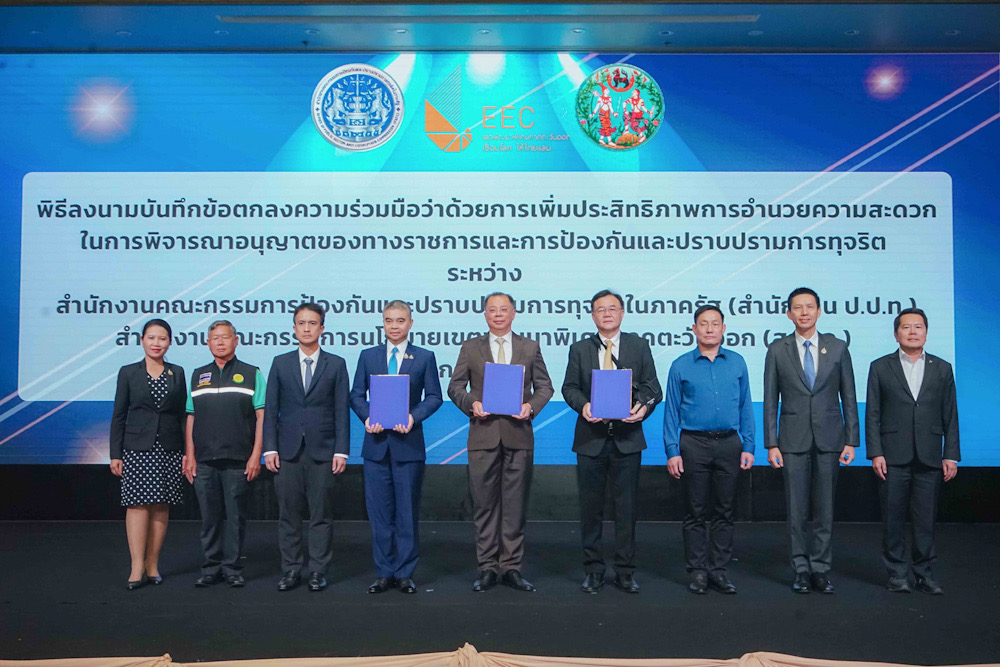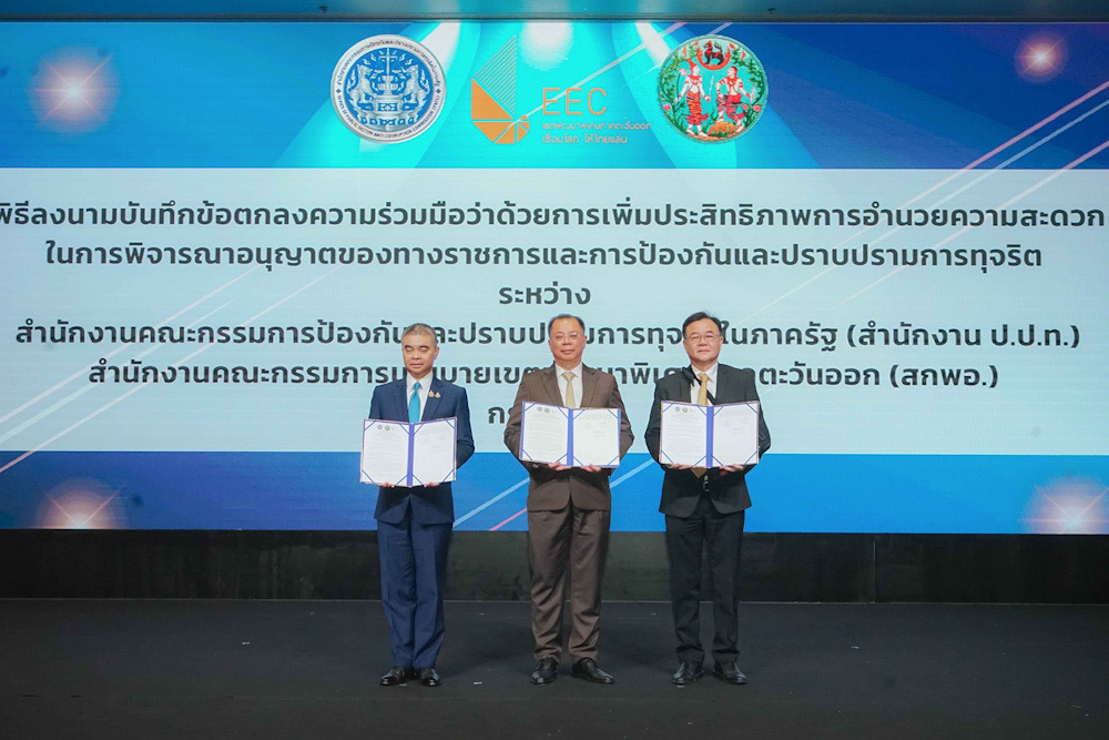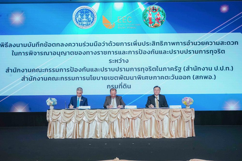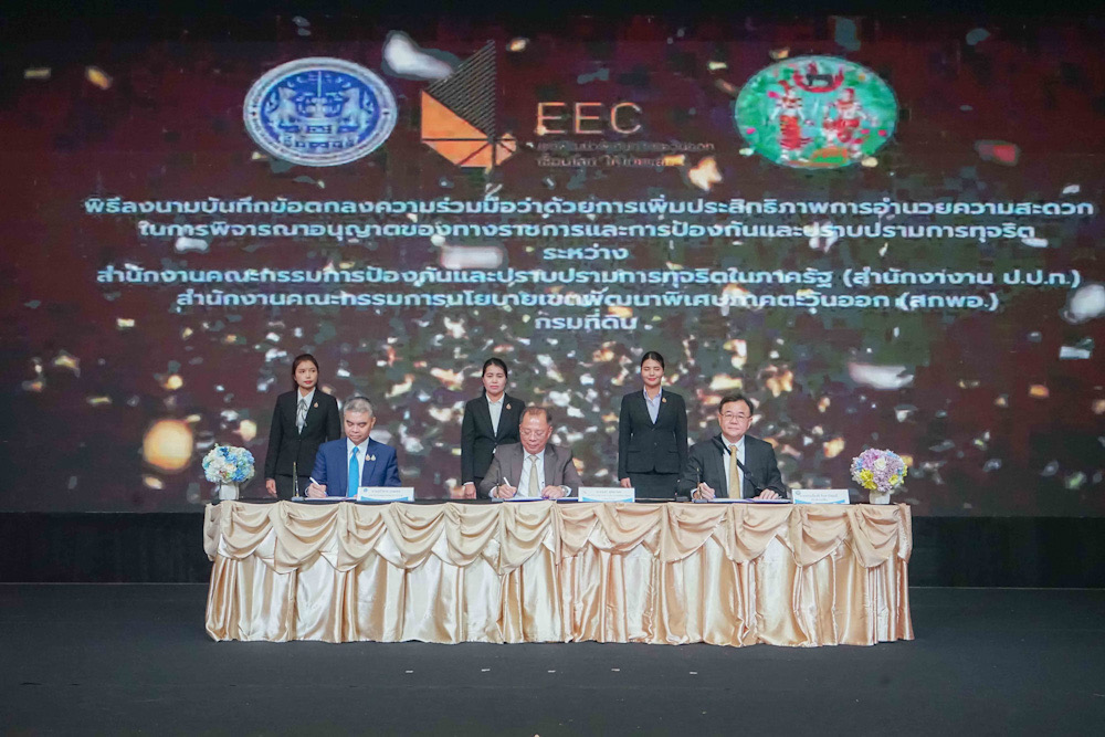 นายจุฬา สุขมานพ เลขาธิการคณะกรรมการนโยบายเขตพัฒนาพิเศษภาคตะวันออก (สกพอ.) พร้อมด้วย นายภูมิวิศาล เกษมศุข เลขาธิการคณะกรรมการป้องกันและปราบปรามการทุจริตในภาครัฐ (ป.ป.ท.) และ นายขจรเกียรติ รักพานิชมณี อธิบดีกรมที่ดิน กระทรวงมหาดไทย ร่วมกันลงนามบันทึกข้อตกลงความร่วมมือ (MOU) ว่าด้วย “การเพิ่มประสิทธิภาพการอำนวยความสะดวกในการพิจารณาอนุญาตของทางราชการและการป้องกันและปราบปรามการทุจริต” ซึ่งเป็นการลงนาม MOU สร้างความร่วมมือระหว่าง 3 หน่วยงาน ได้แก่ สกพอ. สำนักงาน ป.ป.ท. และกรมที่ดิน กระทรวงมหาดไทย และเป็นส่วนหนึ่งของ “การประชุมเชิงปฏิบัติการเพื่อสร้างการรับรู้ ความรู้ ความเข้าใจและรับฟังความคิดเห็น เพื่อจัดทำแนวทาง/มาตรการในการขับเคลื่อนเพื่อยกระดับการให้บริการภาครัฐ” จัดโดยสำนักงาน ป.ป.ท. โดยมีคณะผู้บริหารจากหน่วยงานที่เกี่ยวข้อง ตลอดจนเครือข่ายภาครัฐ ภาคเอกชน และภาคประชาสังคม รวมทั้งสิ้น 250 คน เข้าร่วมเป็นสักขีพยาน ณ โรงแรมแกรนด์ พาลาซโซ่ พัทยา จังหวัดชลบุรี