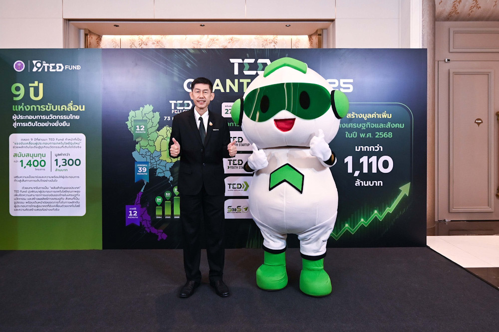 “โดยตลอดระยะเวลา 9 ปี ในการดำเนินงาน TED Fund ก็ได้ทำหน้าที่สนับสนุนผู้ประกอบการด้านเทคโนโลยี และนวัตกรรมเป็นจำนวนกว่า 1,400 โครงการ มูลค่าทุนสนับสนุนกว่า 1,300 ล้านบาท และในปี 2568 สามารถสร้างผลกระทบเชิงเศรษฐกิจและสังคม รวมมูลค่ากว่า 1,110 ล้านบาท ดังนั้นผู้ที่ได้รับทุนในปีนี้ ถือว่าเป็นกำลังสำคัญรุ่นใหม่ ที่จะเข้ามาพัฒนา ช่วยผลักดันประเทศไทย ให้กลายเป็นประเทศแห่งศูนย์กลางของเทคโนโลยี และนวัตกรรมสมัยใหม่ เพื่อขับเคลื่อนอนาคตของเศรษฐกิจไทยให้เติบโตอย่างมั่นคง และยั่งยืนต่อไป” น.สพ.ดร.สนัด กล่าวเพิ่มเติม