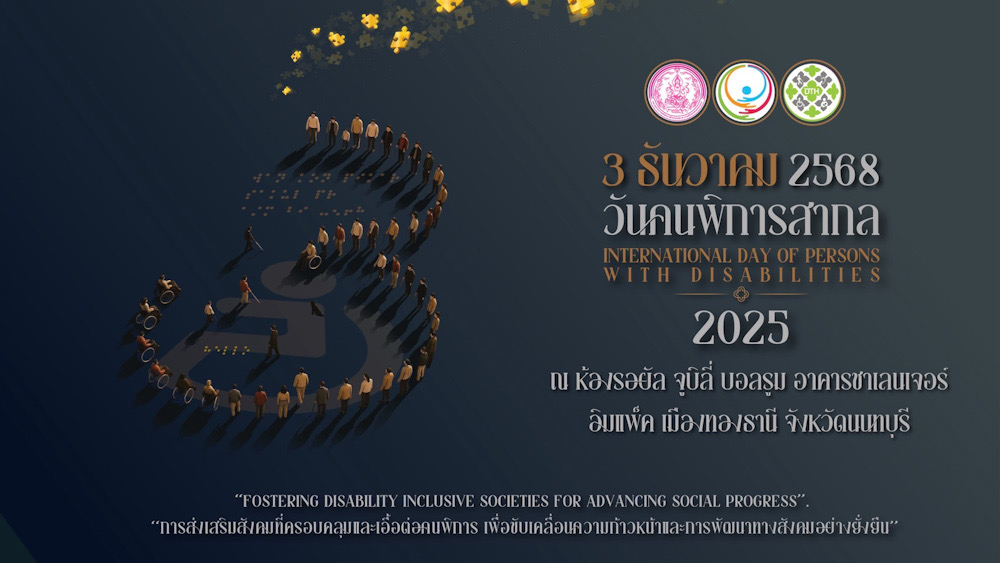 ในโอกาสวันคนพิการสากล ประจำปี 2568 นี้ จึงขอเชิญชวนทุกท่านร่วมงานวันคนพิการสากล ประจำปี 2568 ในวันที่ 3 ธันวาคม 2568 ซึ่งเป็นงานใหญ่ที่ให้ความสำคัญกับการส่งเสริมความเข้าใจและกระตุ้นให้สังคมตระหนักถึงความสำคัญของการเคารพศักดิ์ศรี ความเสมอภาค และคุณภาพชีวิตที่ดีของคนพิการ และเน้นย้ำถึงคุณค่าและศักยภาพของคนพิการในการมีส่วนร่วมในทุกมิติของสังคม พร้อมให้โอกาสกลุ่มคนพิการในการแสดงศักยภาพ โดยมุ่งเน้นความเท่าเทียมกัน และการ Upskill และ Reskill ด้านทักษะส่งเสริมอาชีพของคนพิการ อีกทั้งภาคีเครือข่ายองค์กรด้านคนพิการมีส่วนร่วมผ่านการจัดงานวันคนพิการสากล ประจำปี 2568”