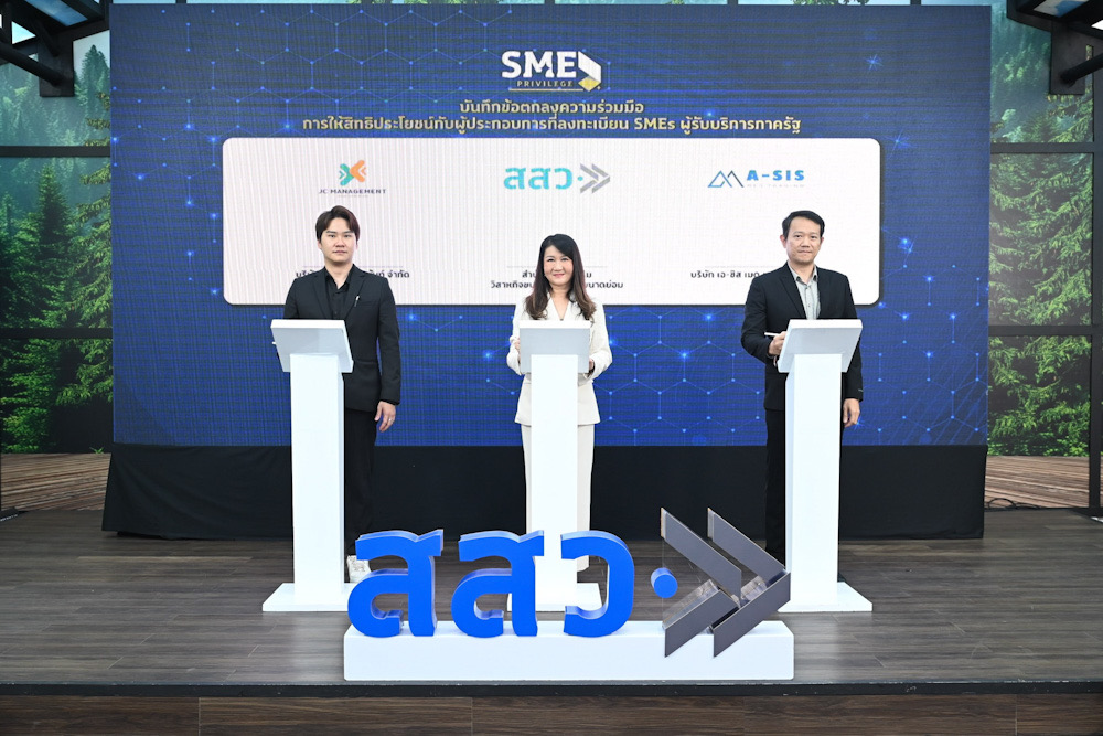 สำนักงานส่งเสริมวิสาหกิจขนาดกลางและขนาดย่อม (สสว.) เดินหน้าเชื่อมโยงความร่วมมือระหว่างภาครัฐและเอกชน ลงนามบันทึกข้อตกลงความร่วมมือ (MOU) พร้อมผนึกกำลังพันธมิตรกว่า 50 หน่วยงาน ผ่านโครงการ SME Privilege เพื่อเสริมสร้างระบบนิเวศทางเศรษฐกิจให้แข็งแกร่ง และส่งมอบสิทธิประโยชน์ครอบคลุม 4 ด้าน ได้แก่ ส่วนลดสินค้าและบริการ การขยายช่องทางตลาด การเชื่อมโยงแหล่งเงินทุน และการปรับตัวสู่ธุรกิจสีเขียวเพื่อเพิ่มโอกาสทางภาษี มุ่งยกระดับศักยภาพ SME ไทยให้เติบโตอย่างยั่งยืน