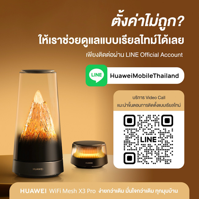 กรุงเทพฯ, 18 กุมภาพันธ์ 2569 – หัวเว่ยตอกย้ำผู้นำนวัตกรรมแห่งอนาคต ด้วยเราเตอร์ดีไซน์พรีเมียมที่ได้รับความสนใจอย่างล้นหลามนับตั้งแต่เปิดตัวในไทยเมื่อเร็วๆ นี้กับ HUAWEI WiFi Mesh X3 Pro เราเตอร์ที่สวยจนเป็นอุปกรณ์ตกแต่งบ้านได้ ดึงดูดสายตาผู้ใช้ยุคใหม่แถมยังเร็ว แรง โดนใจสายคอนเทนต์ด้วยขุมพลัง WiFi 7 ความเร็วสูงสุด 3.6 Gbps ที่สำคัญยังสามารถกระจายสัญญาณครอบคลุมทั่วทั้งบ้าน ตอบโจทย์ที่อยู่อาศัยได้ทุกขนาดไม่ว่าจะอาศัยอยู่ในคอนโดมิเนียม บ้านเดี่ยว หรือวิลล่าหรูขนาดใหญ่ ทั้งหมดนี้ในราคาเพียง 4,990 บาท เท่านั้น นอกจากประสิทธิภาพและดีไซน์ที่เหนือระดับหัวเว่ยยังให้ความสำคัญกับประสบการณ์หลังการขาย โดยมอบบริการวิดีโอคอลแนะนำการติดตั้งฟรีแบบเรียลไทม์ผ่าน LINE Official Account เพื่อช่วยดูแลผู้ใช้งานทุกขั้นตอนอย่างใกล้ชิด ให้สามารถติดตั้งและใช้งานได้อย่างมั่นใจ