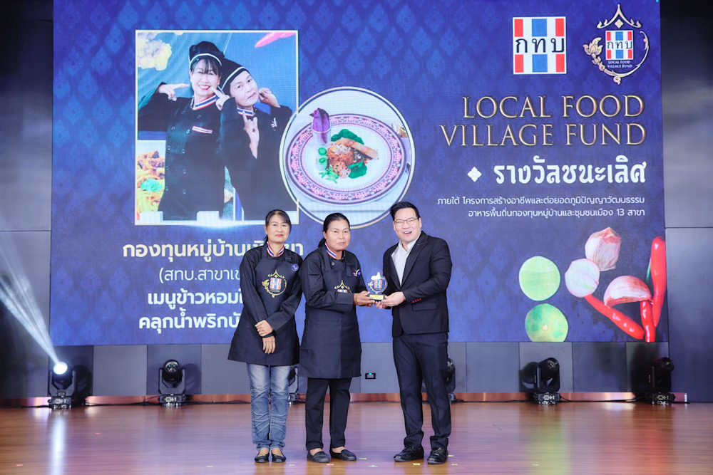 ในวันนี้เป็นการประกาศผลคัดเลือกอาหารพื้นถิ่นกองทุนหมู่บ้านและชุมชนเมืองจากผู้แทนทั้ง 13 กองทุน โดยแต่ละกองทุน จะได้รับโล่รางวัล ประกาศนียบัตร และอุปกรณ์ประกอบอาชีพ เพื่อนำไปพัฒนาอาชีพ สร้างงาน สร้างรายได้ เสริมสร้างกระบวนการพึ่งพาตนเองของหมู่บ้านและชุมชนเมืองและการพัฒนาคุณภาพชีวิตของประชาชนในชุมชน ต่อยอด “โครงการสร้างอาชีพและต่อยอดภูมิปัญญาวัฒนธรรมอาหารพื้นถิ่น กองทุนหมู่บ้าน และชุมชนเมือง 13 สาขา” ต่อไป