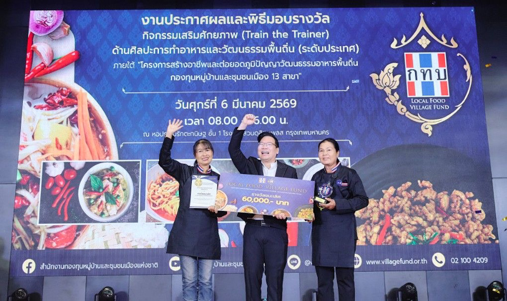 สำนักงานกองทุนหมู่บ้านและชุมชนเมืองแห่งชาติ จัดกิจกรรมเสริมศักยภาพ (Train the Trainer) ด้านศิลปะการทำอาหารและวัฒนธรรมพื้นถิ่น (ระดับประเทศ) ภายใต้ “โครงการสร้างอาชีพและต่อยอดภูมิปัญญาวัฒนธรรมอาหารพื้นถิ่น กองทุนหมู่บ้านและชุมชนเมือง 13 สาขา” ระหว่างวันที่ 4 – 6 มีนาคม 2569 ณ หอประชุมรักตะกนิษฐ ชั้น 1 โรงแรมสวนดุสิตเพลส กรุงเทพมหานคร